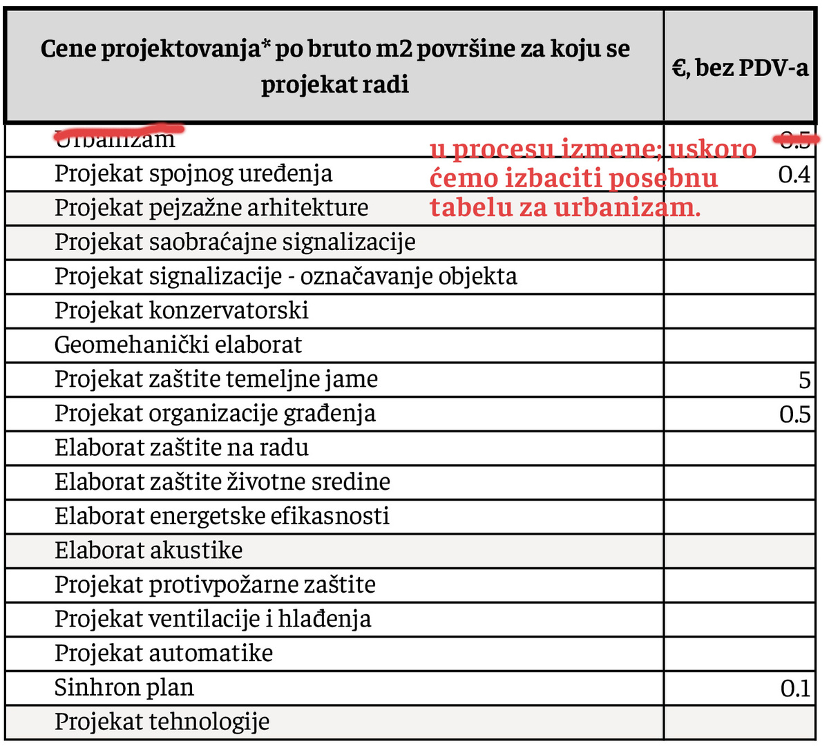 *predaja projekta SAMO u digitalnom obliku - kao pdf crteži. Cene ne uključuju nikakvu štampu projekata!!!