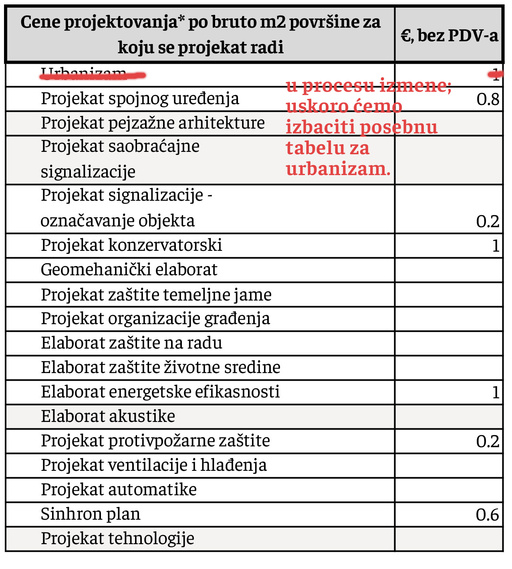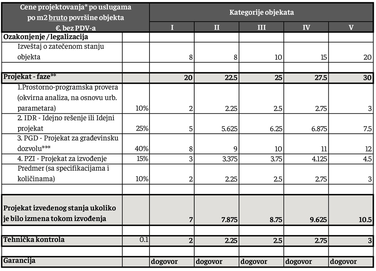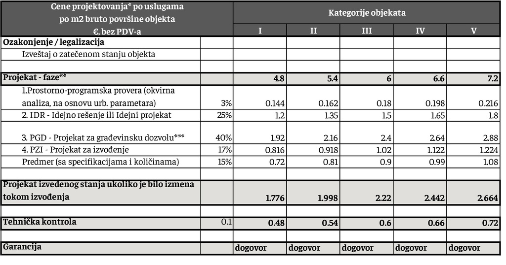 **za rekonstrukcije objekata, primenjuju se cene kao za fazu PGD.