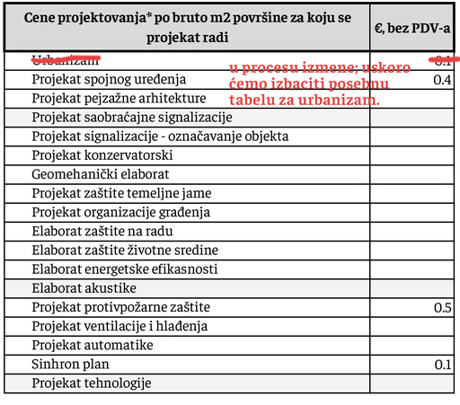 *predaja projekta SAMO u digitalnom obliku - kao pdf crteži. Cene ne uključuju nikakvu štampu projekata!!!