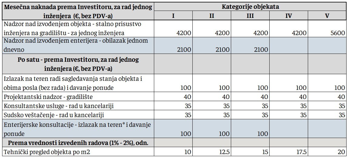 *** Minimalna cena za Elaborat EE Iznosi po kategorijama: 500 € (I), 700€ (II), 850 € (III), 1000 € (IV) i 1500€ (V).